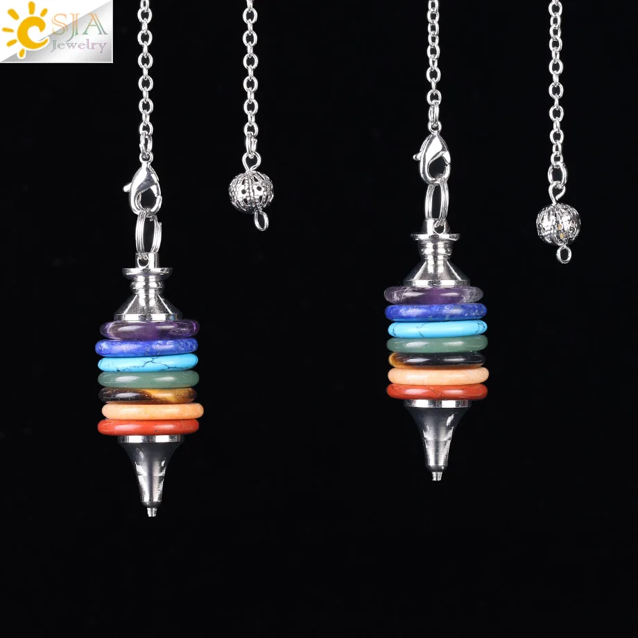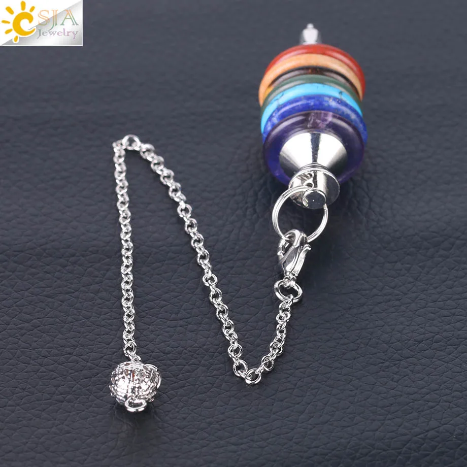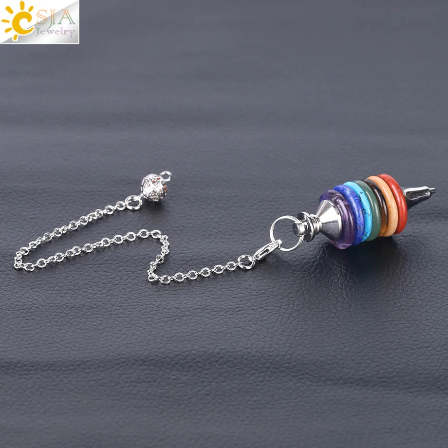 CSJA 7 Чакр маятник приданое натуральный камень кулон колеса жизни драгоценные камни ювелирные маятники Мужчины Женщины Мужчины подарок Маятник маятник F327