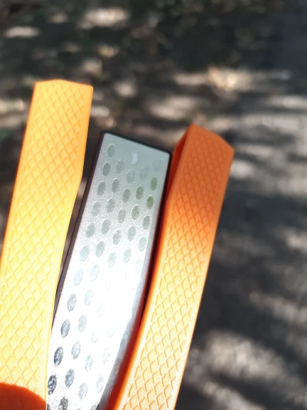Удобная вещь для того чтоб наточить нож, скажем на природе, заказываю не первый раз. Всегда, правда, у разных продавцов. В частности данный заказ порадовал исполнением ручки - она "в пупырку", что уменьшает скольжение, при заточки мокрыми руками, как это часто и бывает
