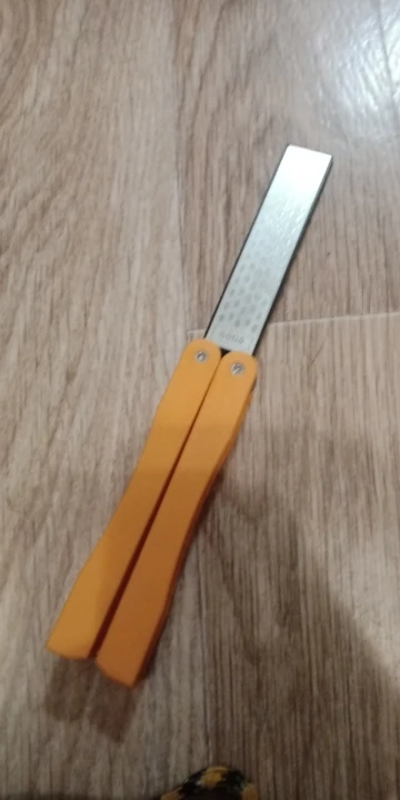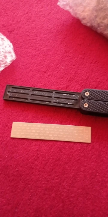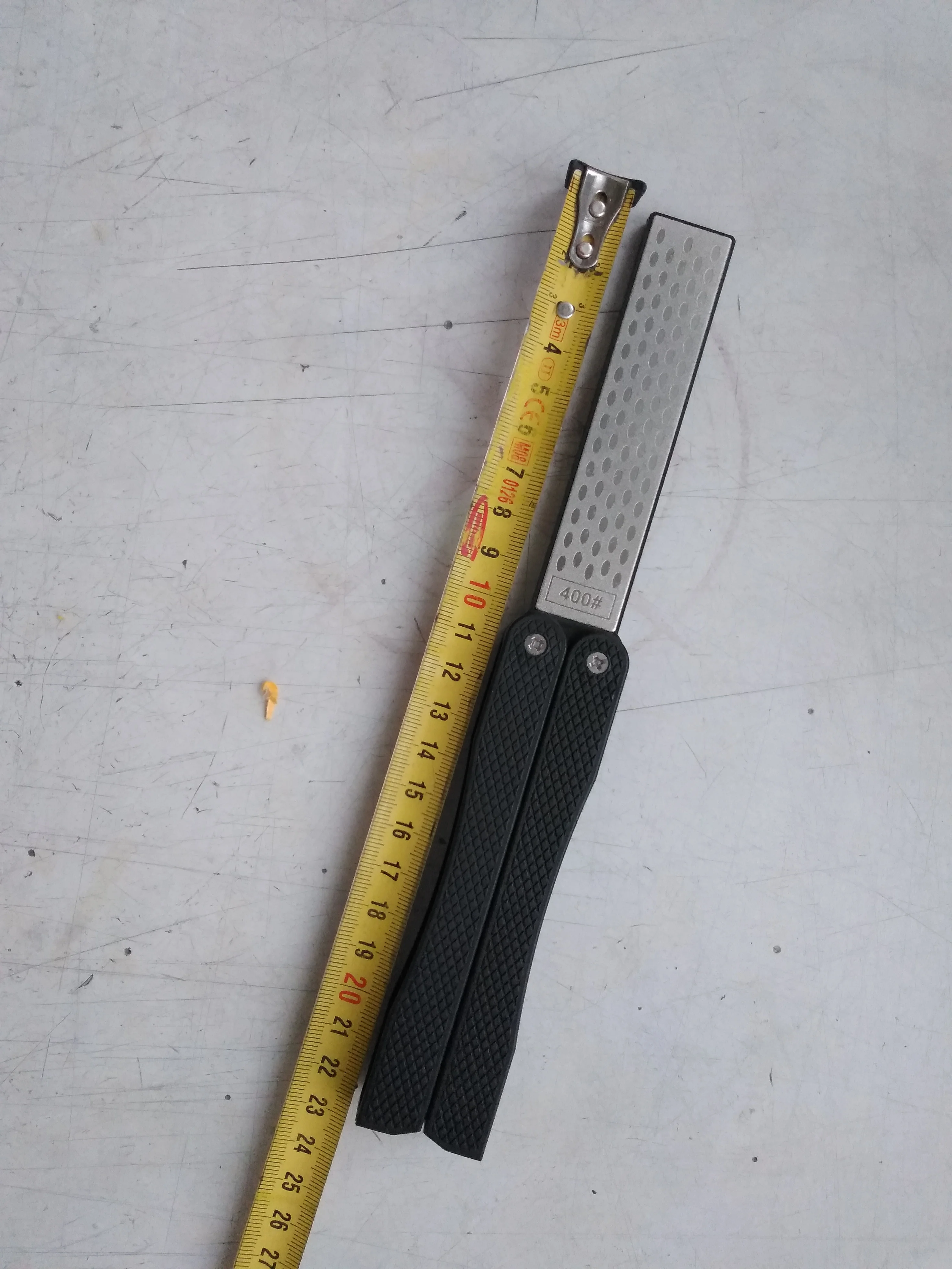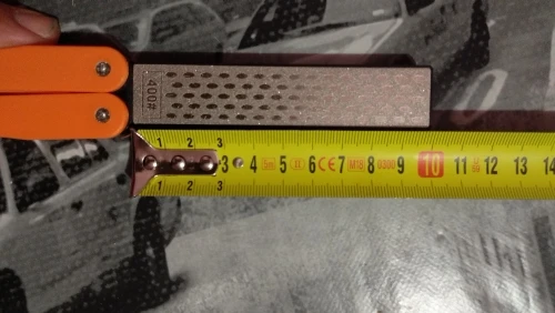 Хорошая точилка, размеры брусков 20 мм на 100 мм, толщина двух 5,5 мм. Кромки не выступают, бруски ровные, качество напыления хорошее, #400 и #600. Фиксируется хорошо, есть небольшой уступ на ручке, чтобы на расходились. Ручка в стенках, конечно, тонковата, но не критично, держать можно. По поводу зернистости - на мой взгляд, это приспособление не для заточки (размер маловат), а для оперативной правки, причем приличных ножей с высокой твердостью. Для этого и покупалось. Поэтому лучше, если бы зернистость была 600 и 1000. Но это мое мнение. Отдельное спасибо продавцу за доставку - всего 2 недели. Рекомендую.