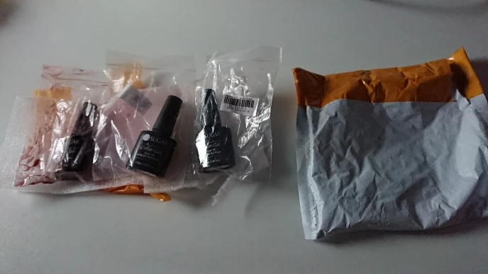 доставка два месяца-это минус!Внешне все нормально.Бросили в почтовый ящик.Частный сектор.Гели пролежали ночь при температуре -23°.В работе данный гель пока не пробовала.Хотя пользуюсь гелем этой фирмы уже 3 года,мне нравится.