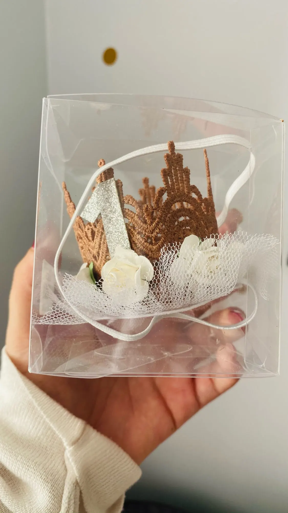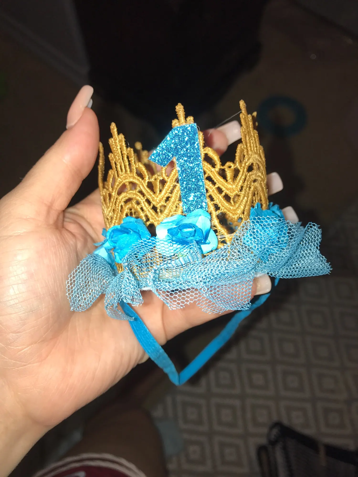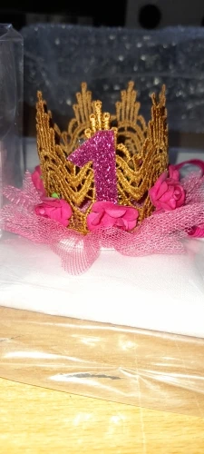 Красивая корона, пришла немного помята, так как центр короны был пустой. Но не критично, расправятся. Цвет самой короны намного темнее. В остальном отлично. Нигде ничего не торчит, держится все хорошо. Закалывала несколько товаров отправили все вместе и быстро. Рекомендую