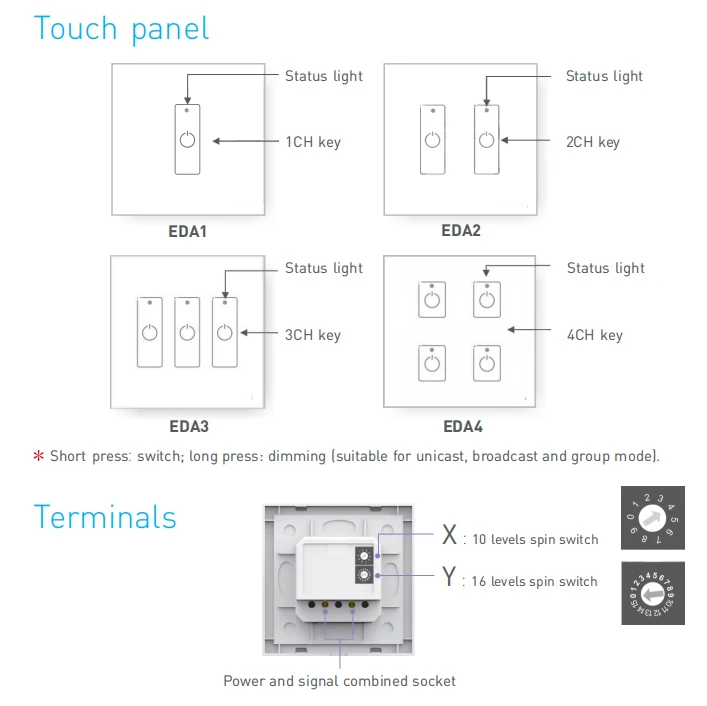 Новый EDA1 с цифровым адресным интерфейсом выключатели со светодиодным индикатором 1 канал на переключатель включениявыключения настенное крепление сенсорный Панель затемнения группа Unicast трансляции контроллер
