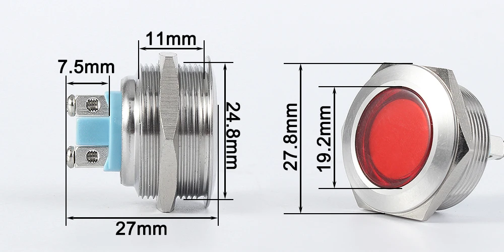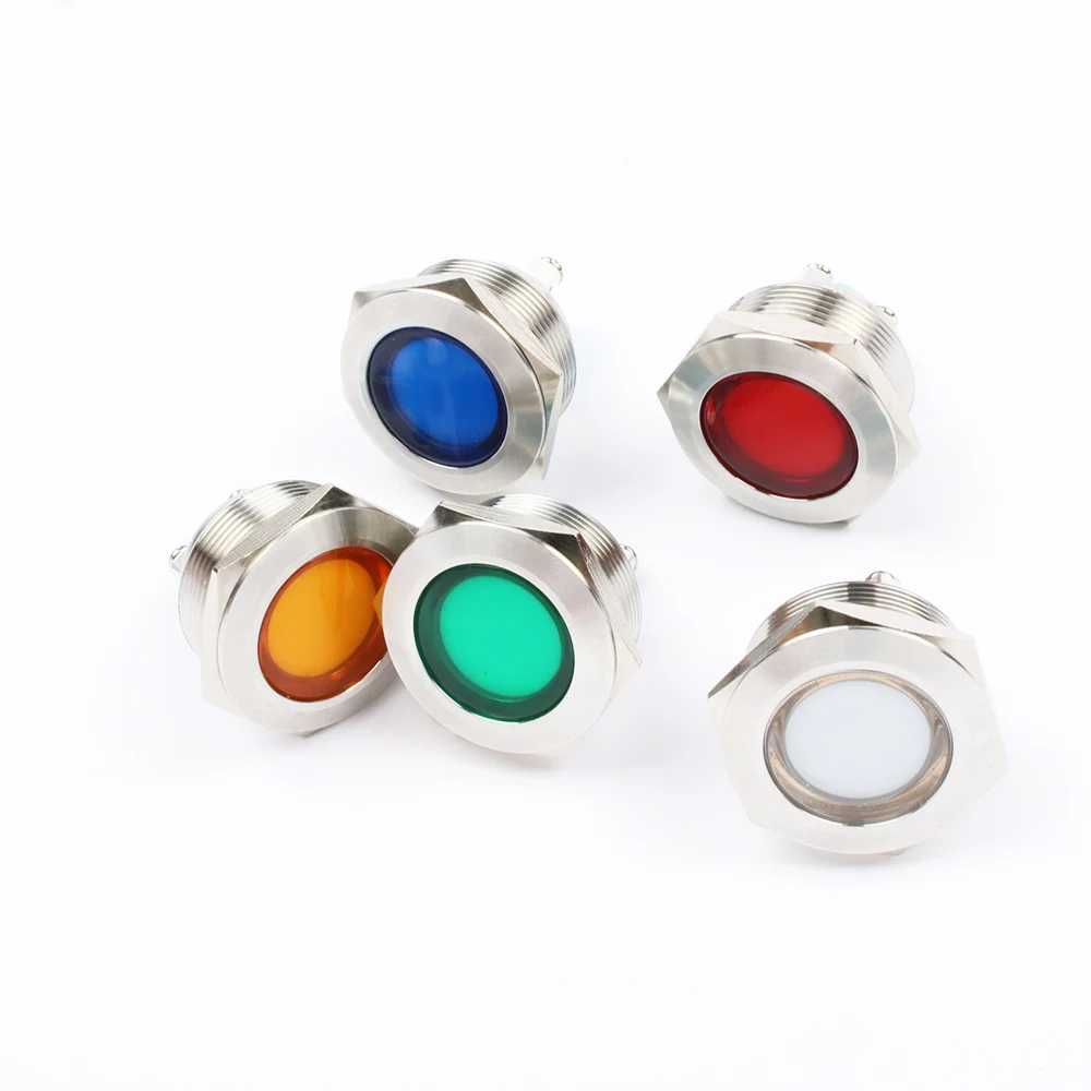 Светодиодный металлический индикатор светильник 25 мм Плоская Круглая сигнальная лампа светильник в 6 в 12 В 24 В 220 В винтовое соединение красный желтый синий белый 25zsd.t. L