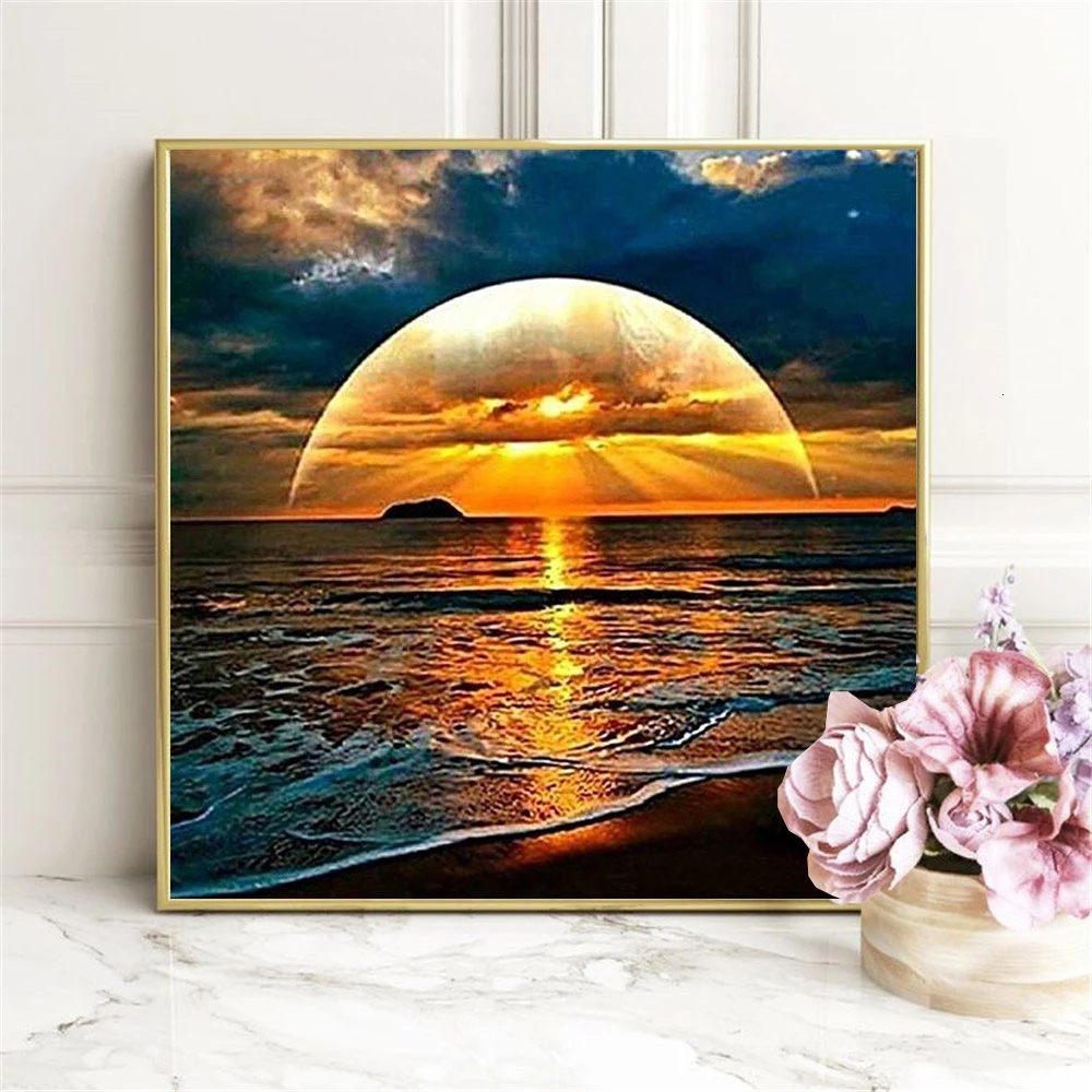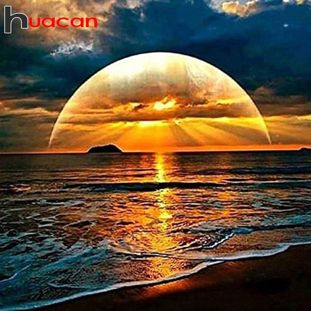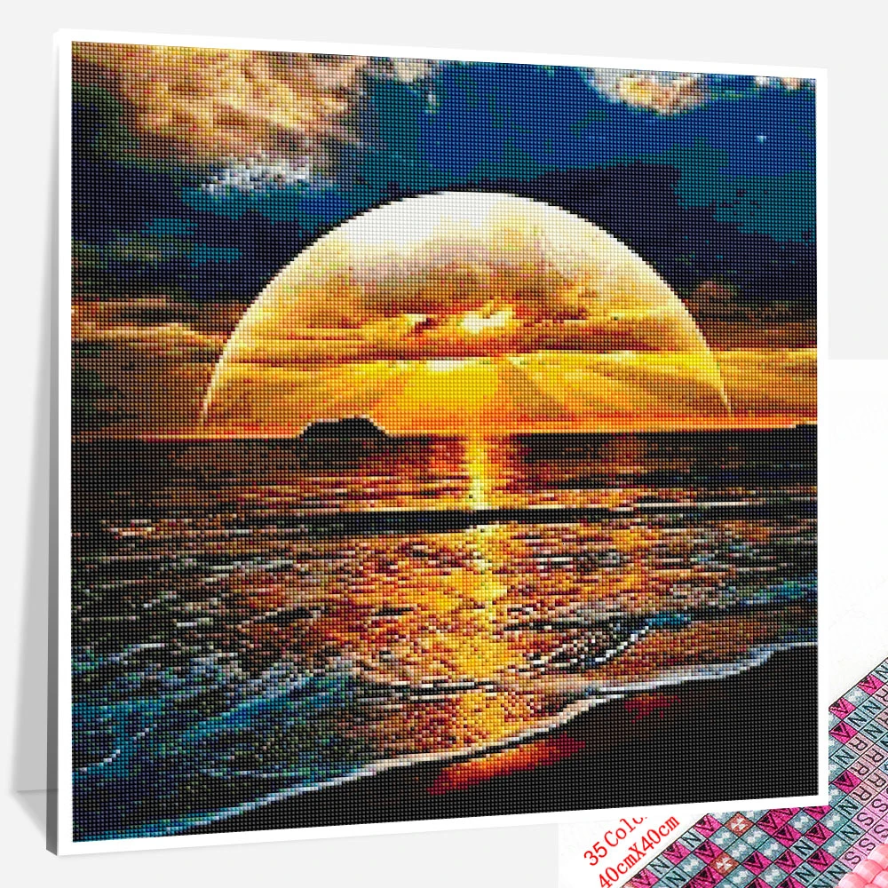 Картина для алмазной вышивки с морским закатом, квадратные Стразы