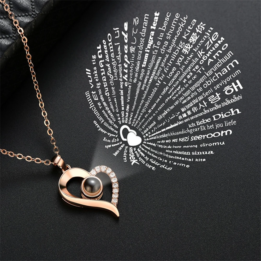 Ожерелье с подвеской в виде проектора для женщин, оптом, 20 шт.компл., 100 языков, я люблю тебя, ожерелье, подарок на день Святого Валентина