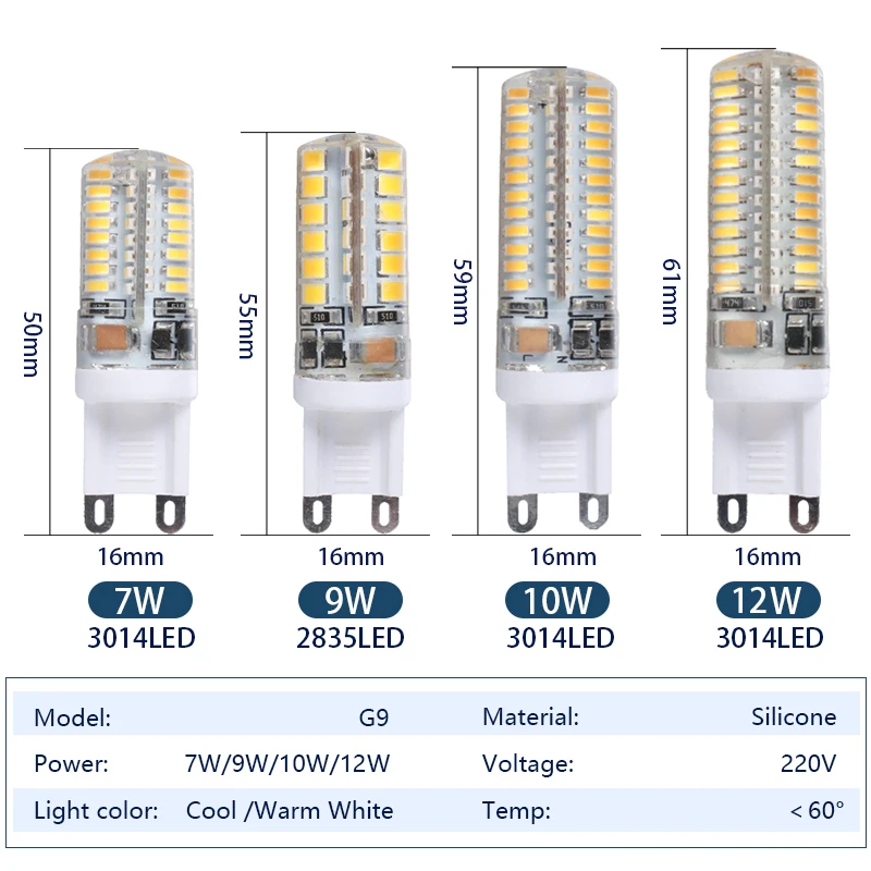 G9 светодиодный AC 220V-240V 6 Вт 7 Вт 9 Вт 10 Вт 12 Вт светодиодный G9 светильник светодиодный лампы SMD 2835 3014 Светодиодный G9 светильник заменить 20 Вт30 Вт40 Вт50 галогенная лампа светильник