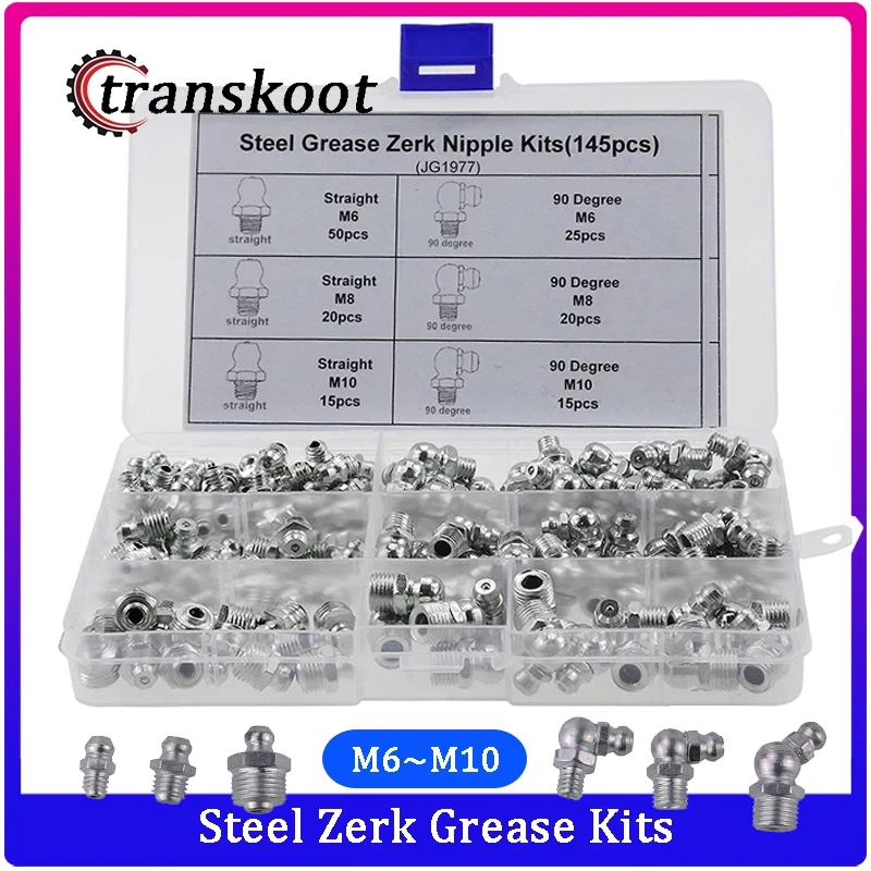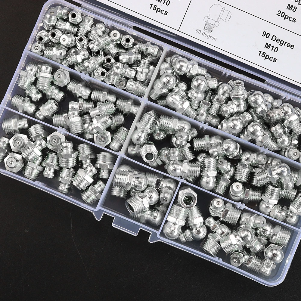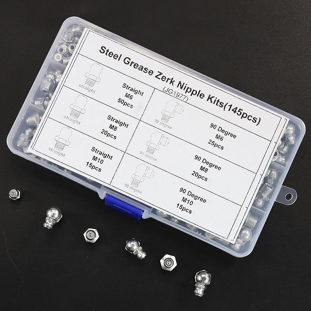 Набор гидравлических ниппелей Zerk для смазки M6 M8 M10, 90 градусов и прямого типа, 145 шт.