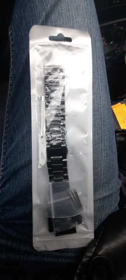 Залипло долго на таможне, якобы неверные данные. Так что не думаю, ч то имеет отношение к продавцу. Несколько посылок были в одну объединены. Ремешок тяжёлый, похоже, это реально нержавейка. Не люфтит, не гремит. По-мне так, реально качественный. На Galaxy watch 3 подошёл идеально. Комплектные заглушки на корпус, не подошли, но они и не были заявлены на эти часы. В общем, однозначно, рекомендую!!!!