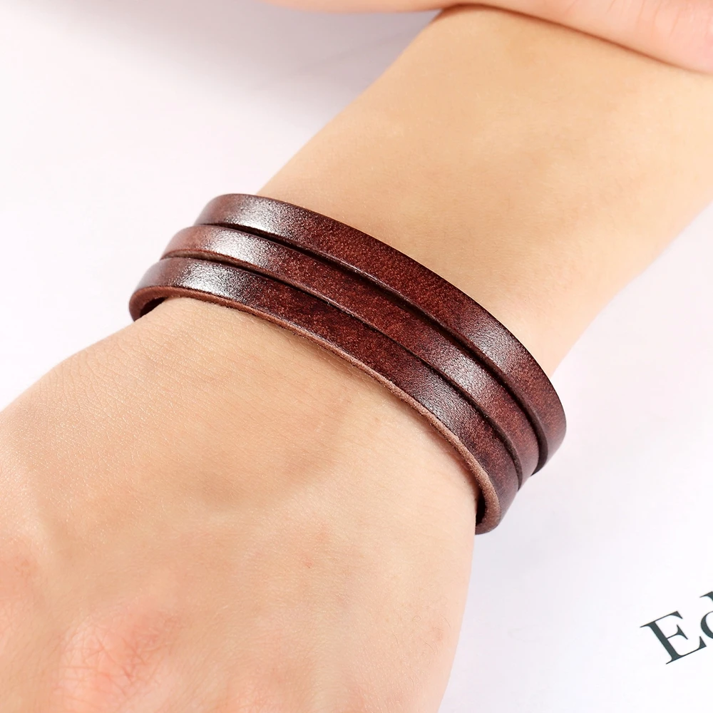 Браслет из искусственной кожи XQNI, классический стиль, двухслойная застежка, черныйкоричневыйоранжевый цвет, мужские ювелирные аксессуары, подарок
