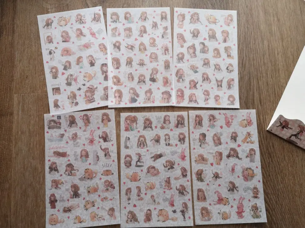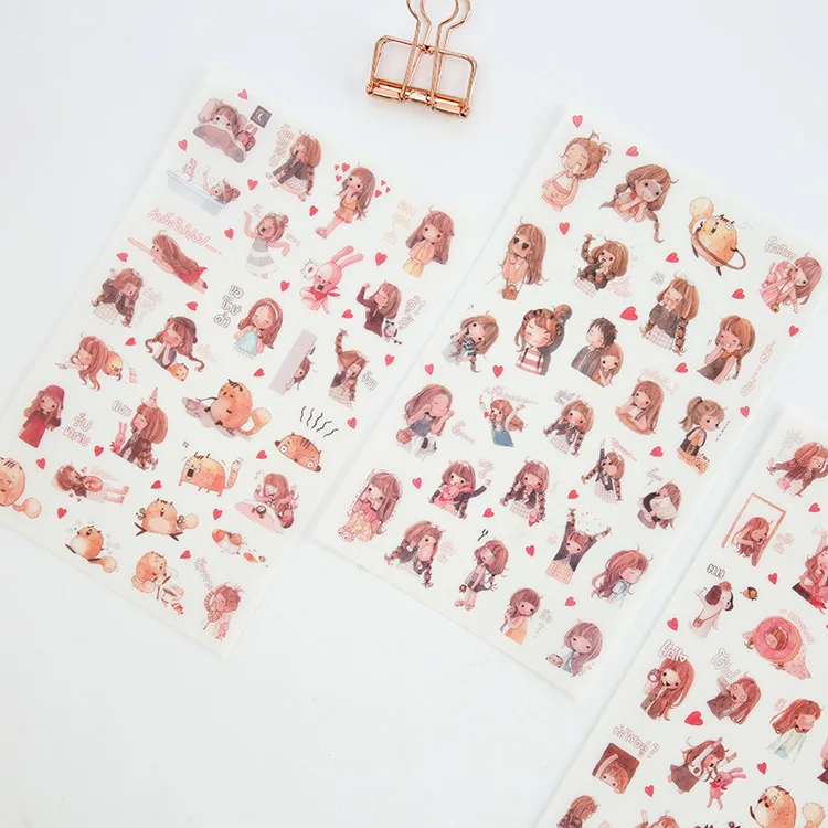 6 шт.упак., милые повседневные Стикеры для девочек, Мультяшные Стикеры, стикеры для дневника, украшение для альбома, ПВХ, японские Канцелярские Стикеры