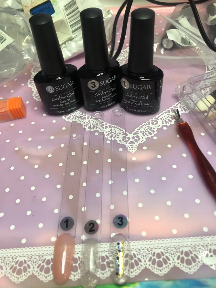 UR SUGAR-это один из лучших магазинов, из которых я купил. Доставка очень быстрая, и товары идеально упакованы. Что касается реальных товаров: Они потрясающие. Прозрачный гелевый удлинитель был гораздо проще в использовании, чем полигель и акриловый порошок. Определенно рекомендую! Просто убедитесь, что вы покупаете Дегидратор, грунтовку для ногтей, Базовое покрытие и УФ-лампу. Цвет, который я ношу ниже,-UR SUGAR 058. Очень красиво. Мне нравится, потому что это как Желейный лак для ногтей с блестками.