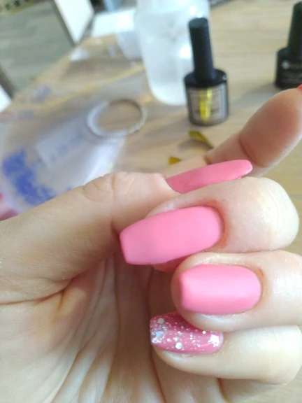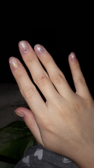 не первый раз заказываю. держится . цвет красивый максимально похож с палитрой продавца. шиммер мелкий.. очень нежно переливается. наносится легко, сохнет быстро. аллергический реакций не вызывает. можно носить самостоятельно если в несколько слоев.. можно как базу под лак. ногти крепкие.. не трескается.