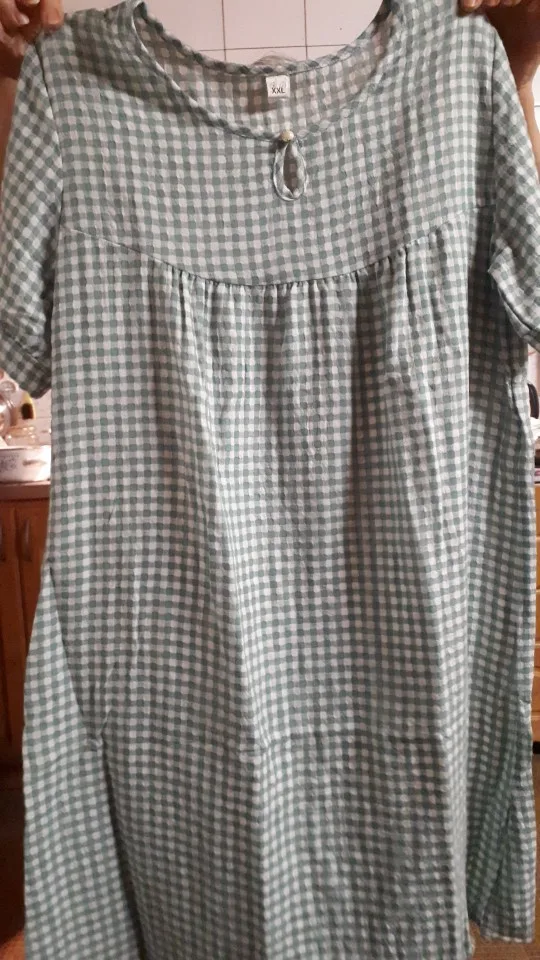 Заказом довольна. Пошив аккуратный. Ткань х/б. XXL на размер 50