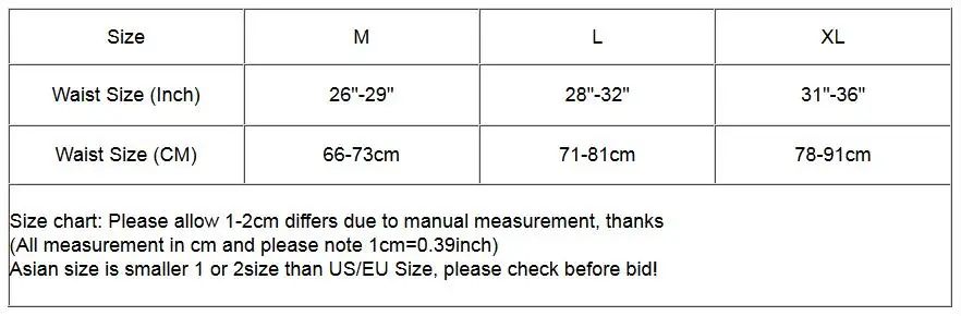 Таблица размеров: пожалуйста, учитывайте разницу в 1-2 см из-за ручного измерения, спасибо(Все размеры указаны в см, обратите внимание: 1 см = 0,39 дюйма)Азиатский размер меньше на 1 или 2 размера, чем размер США/ЕС, пожалуйста, проверьте перед покупкой!