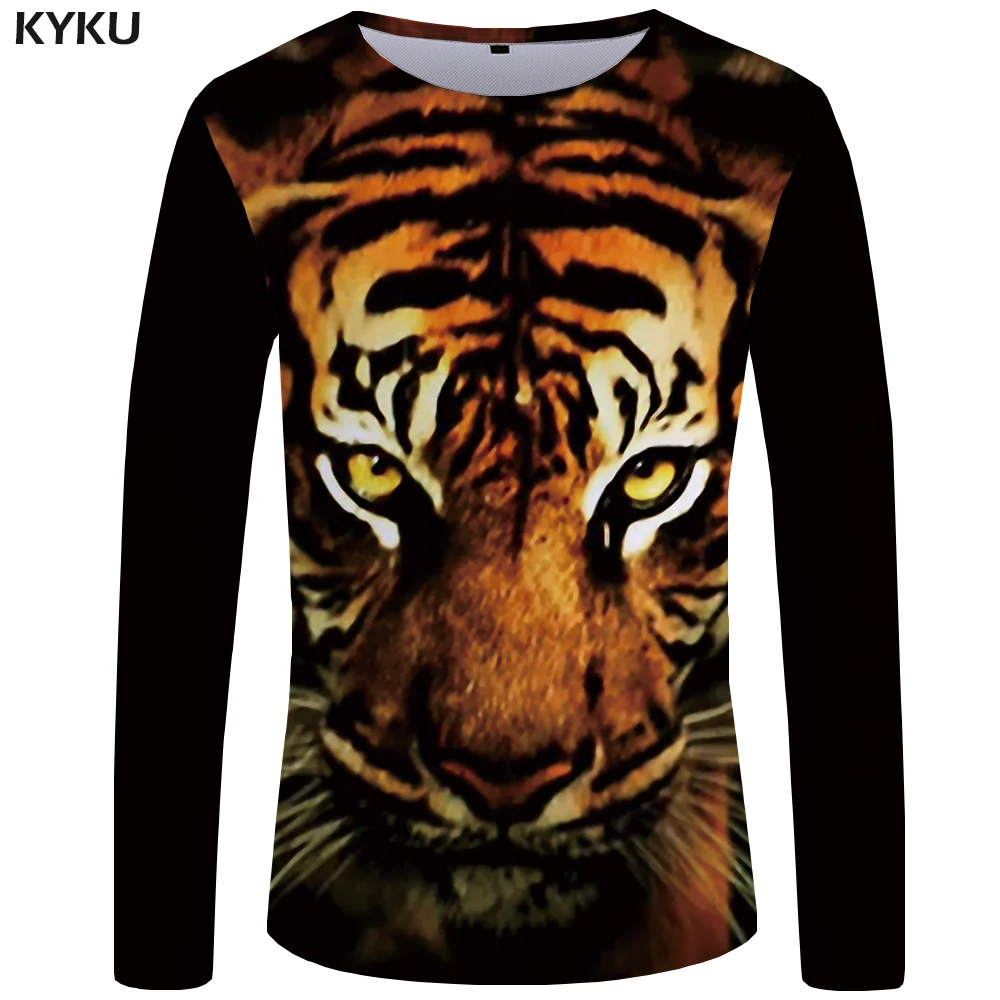 Футболка с тигром KYKU Мужская, брендовая тенниска с длинными рукавами, уличная одежда с галактикой, рок, сорняками, крутые смешные футболки с животными, японская одежда