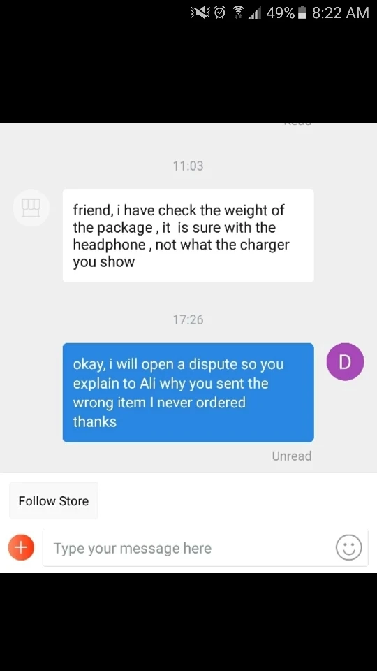 Обманщик. Я заказал наушники, продавец отправил, Бог знает, что (Некоторые адаптеры, которые я думаю) и отказался отправить правильную вещь или получить возврат средств. Если его поставщик сделал ошибку, это его ответственность, а не моя. AliExpress также принимает сторону продавца, поэтому я больше не буду заказывать, я потеряю свои деньги. Обманщик. Худший опыт в Ali ever (и мне нравятся заказы 5k).