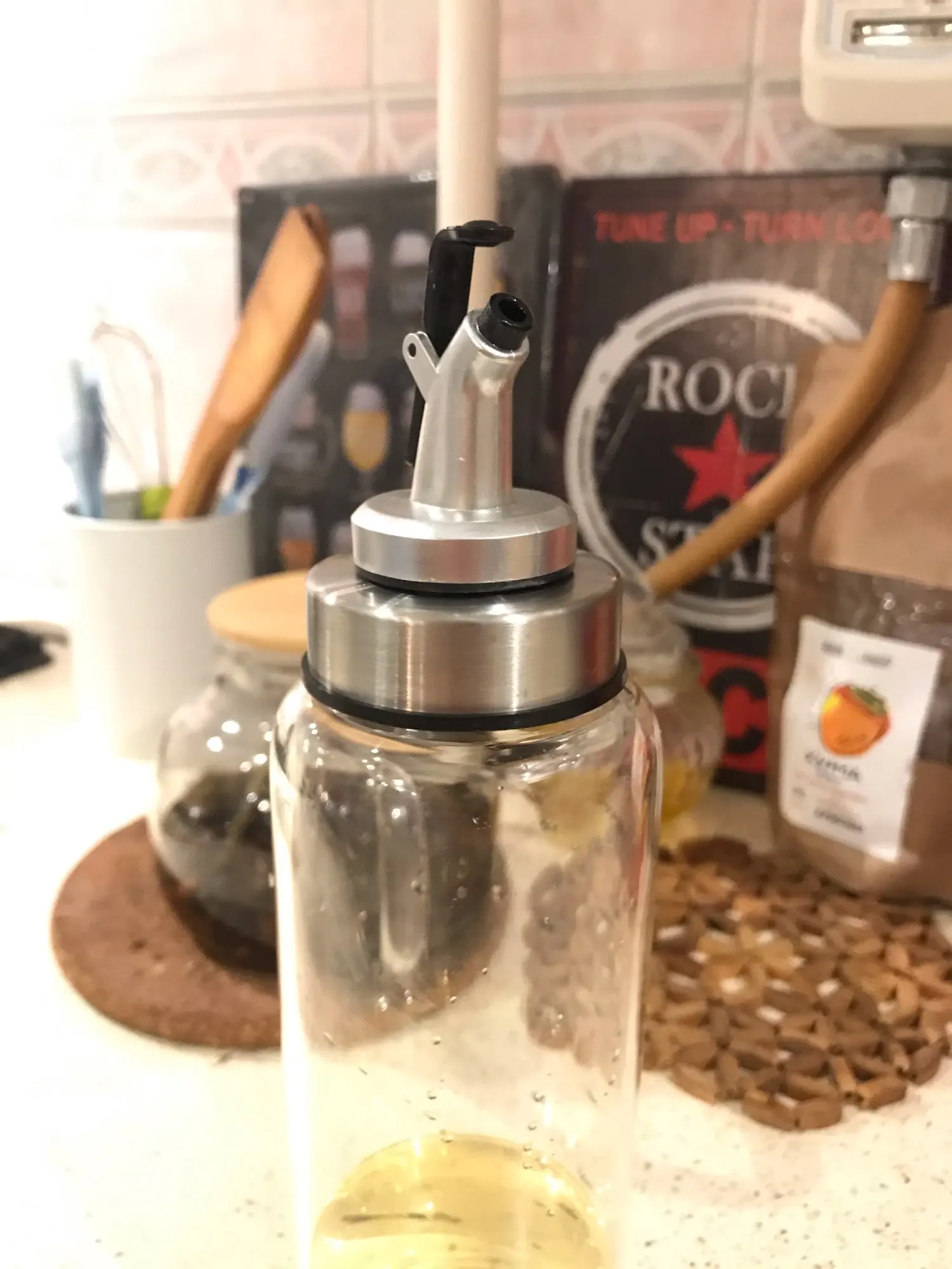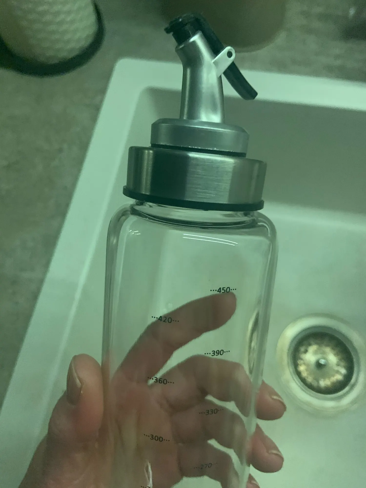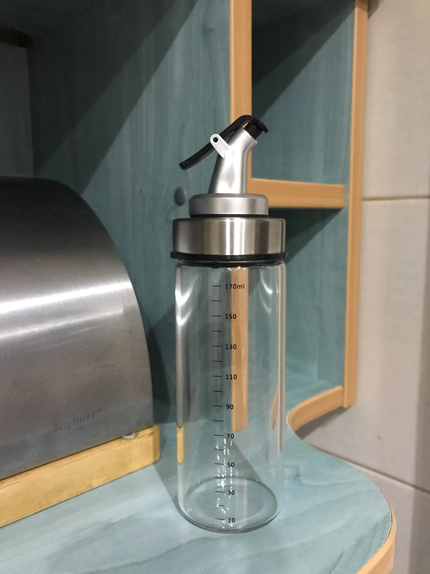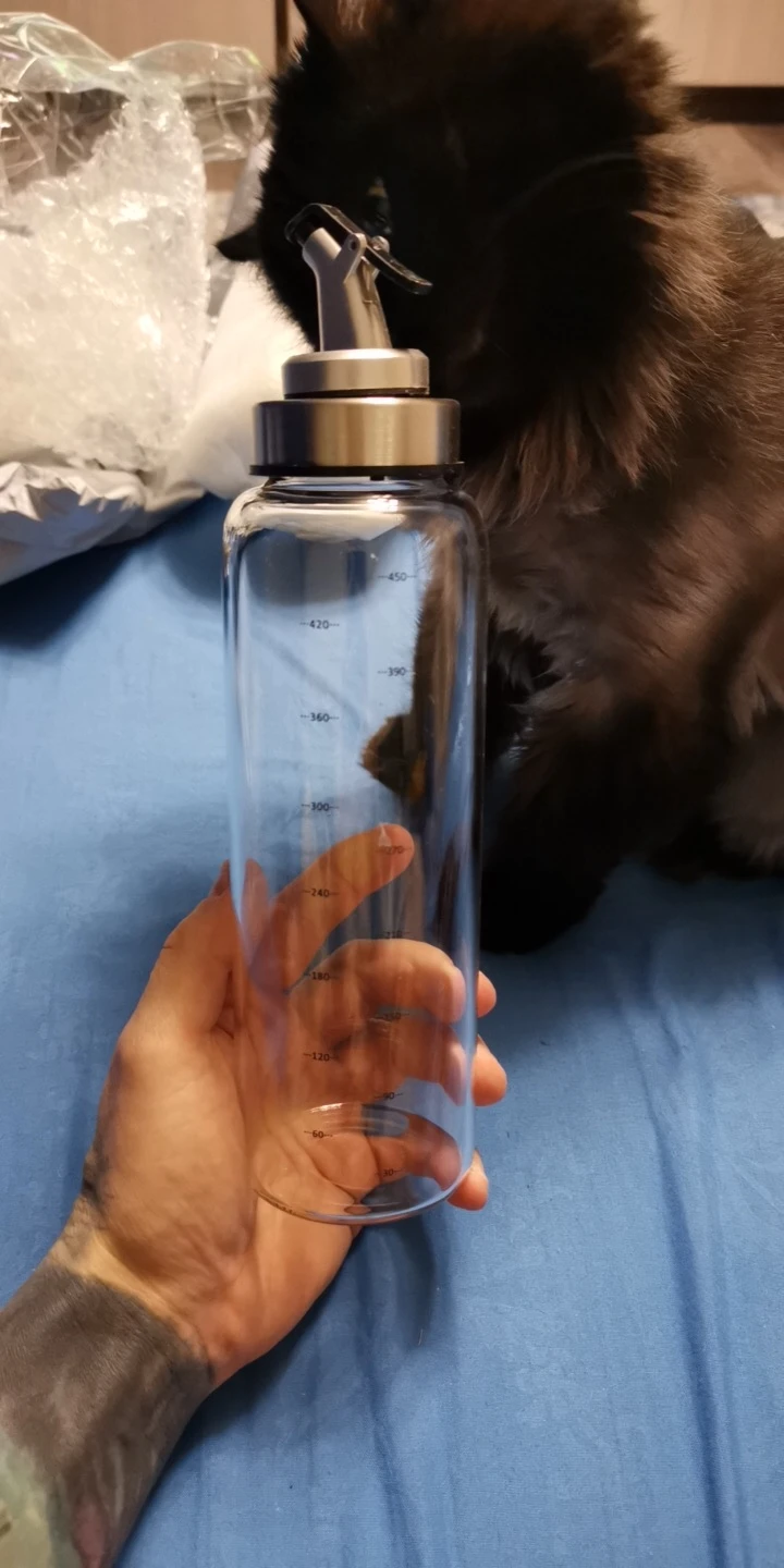 Крутая и стильная вещь.давно искала что-то для замены этих ужасных пластиковых бутылок для масла. Стекло приятно ложится в руку. 500 мл оптимальный размер дошло за 14 дней