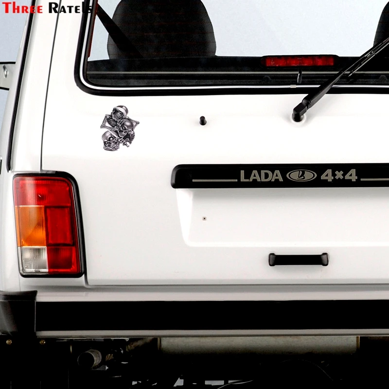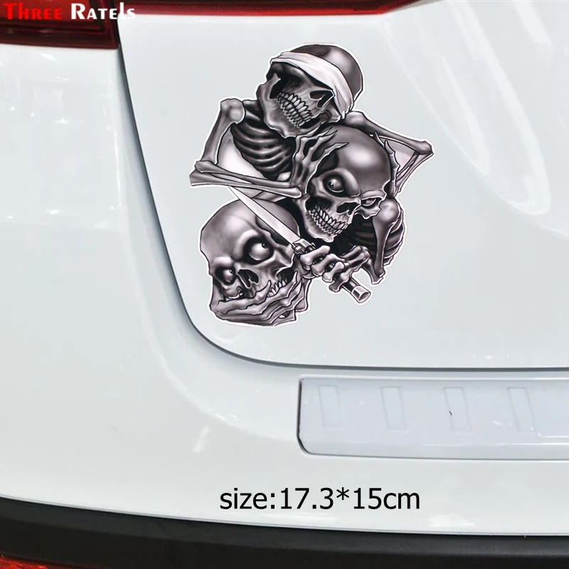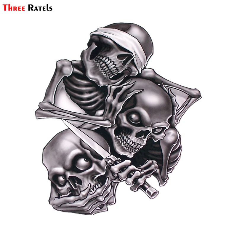 Three Ratels TZ-1330# 17.3*15см не смотри не слушай не говори череп прикольные полноцветные наклейки на авто наклейка на машину автонаклейка стикеры