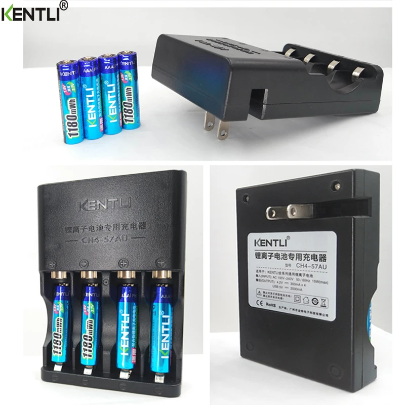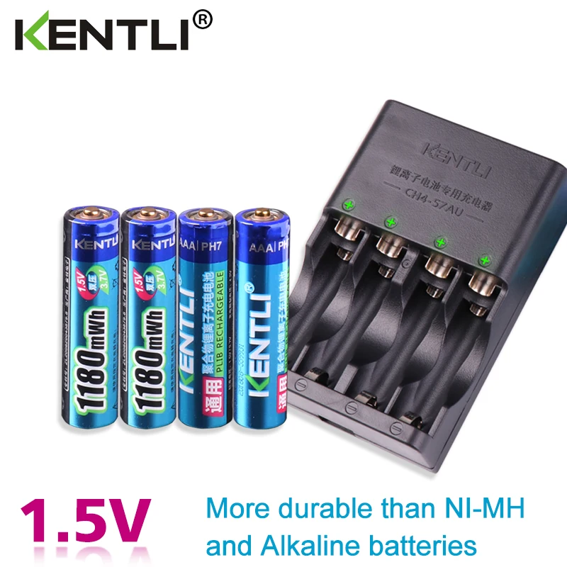 KENTLI 4 шт. 1,5 в aaa МВтч перезаряжаемая литий-ионная литий-полимерная литиевая батарея + 4 слота AA AAA литиевая смарт-зарядка