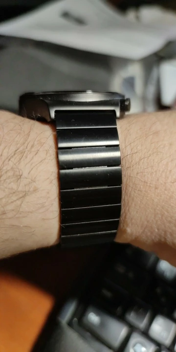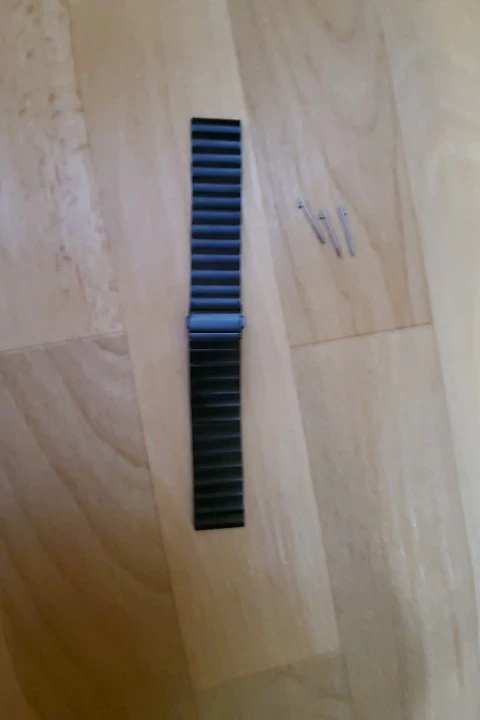 Ремешок классный. Ощущается на руке хорошо. Смотрится красиво. При выдавливании штифтов нужно не докручивать толкатель до залотистой утолченной части, иначе можно содрать черное покрытие с удаляемого звена.