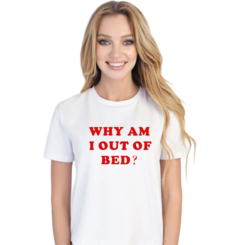 Забавная хлопковая футболка с надписью Why Am i Out Of Bed, женские Графические футболки, топ с принтом со слоганом, забавная рубашка для сна и ленивых