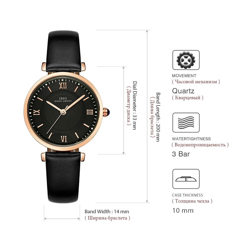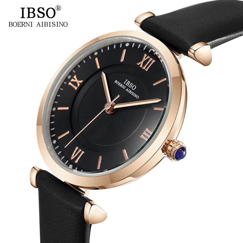 Черные модные женские наручные часы IBSO с кожаным ремешком, женские часы 2019, роскошные брендовые кварцевые часы цвета розового золота, женские часы #6602