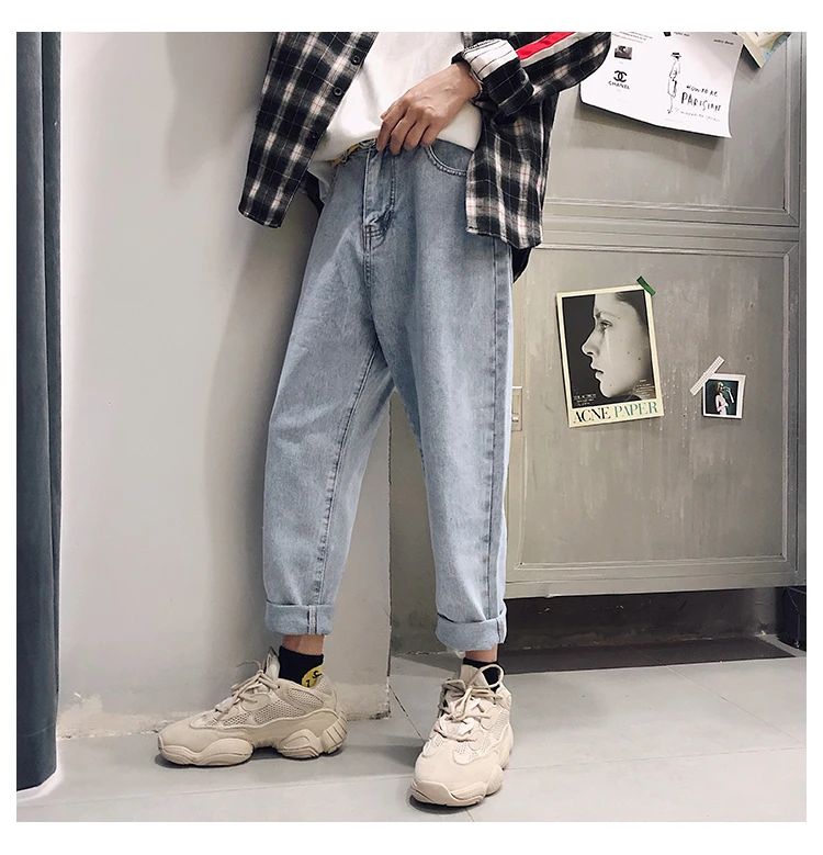 Мужские свободные джинсы на молнии, голубые ковбойские джинсы из промытого хлопка, 2019