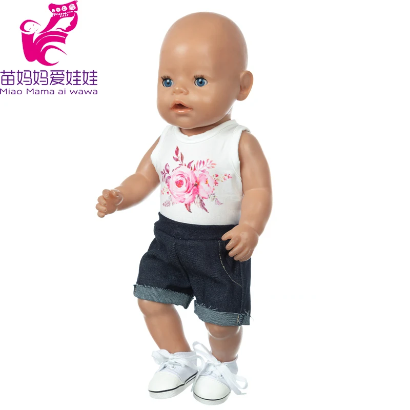 Одежда для кукол 43 см, игрушки для новорожденных, хлопковая рубашка для мальчиков и девочек, короткие штаны, костюм для 18-дюймовой куклы для девочек