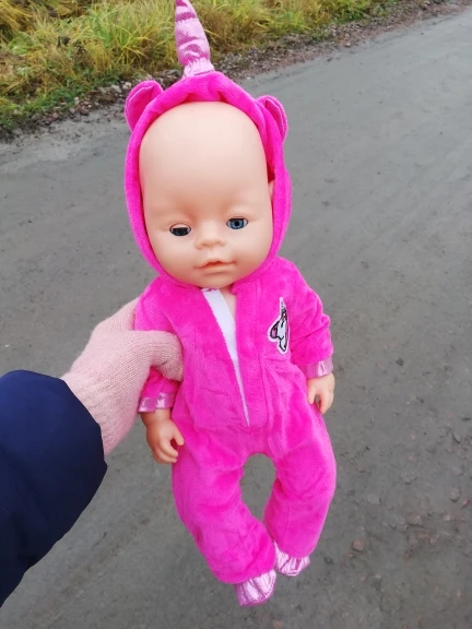 Комбез прям впритык с натяжкой кукле 43 см, качество не синтетика, бархат, приятное, продавца и товар рекомендую