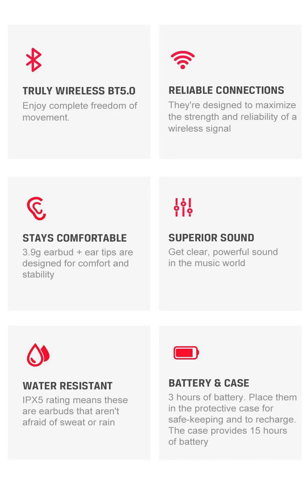 Наушники пришли быстро (недели 2, не больше). Думал придут глянцевые, как на картинке, но пришли матовые. По звуку ожидать от наушников-капель не стоит много, но басы, средние и высокие частоты берут хорошо. Не прям очень громкие (либо я уже оглох настолько, что меня мало что берет. Но по сравнению с xiaomi которым уже год и покупал я их за тысячу с лишним, эти в 1.5-2 раза громче и это очень радует). Довольно простое и интуитивное управление (продавец даже сделал видео инструкцию на русском. А так мануал в коробке на английском или китайском) . Здесь даже можно переключать песни. В моих xiaomi такой возможности не было. В ушах держатся, но при беге не знаю, нет уверенности в них. А для своей цены (брал за 850 рублей) вполне отличий вариант. Теперь вся надежда на их срок службы, что они отходят долгую жизнь :)