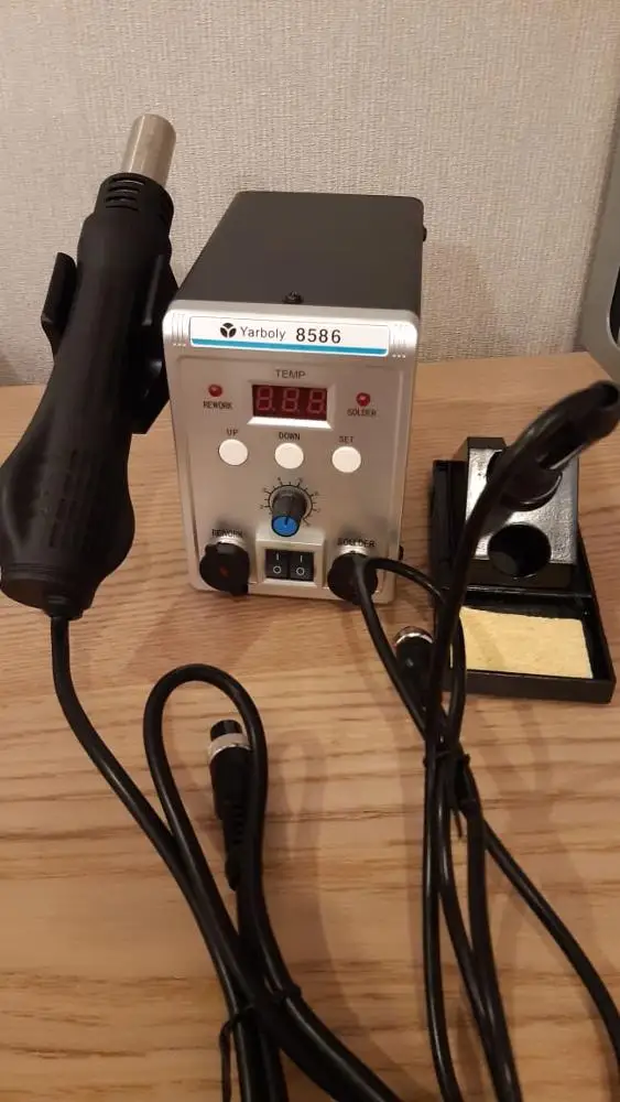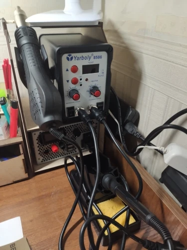 доставка в Беларусь 59 дней, месяц лежала в Казахстане, потом СДЭК за неделю привез. температура не соответствует заданной (подстройка не сильно помогает), на паяльнике температура скачет сильно. с феном дела чуть лучше, подстроил показания и на диапазоне 100-300 более менее точно показывает (+-10градусов). внутри маленький трансформатор. не гудит. лёгкая очень, внутри много пустого места, можно и лабораторный блок питания ещё впихнуть во внутрь. провода мягкие, гнутся легко, но как по мне - короткие