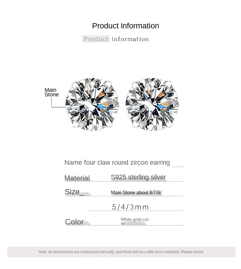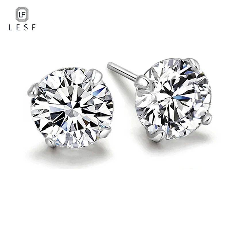 LESF 925 стерлингового серебра серьги-гвоздики для женщин 1,25 CT, классика, четыре зубец циркония серьги для свадьбы, помолвки, свадебные украшения