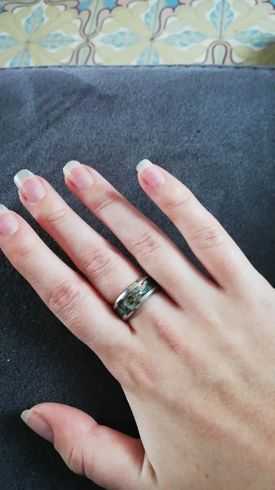 Кольцо обручальное 8 мм, ракушка из нержавеющей стали, с радужным волнистым абалоном, с инкрустацией из нержавеющей стали