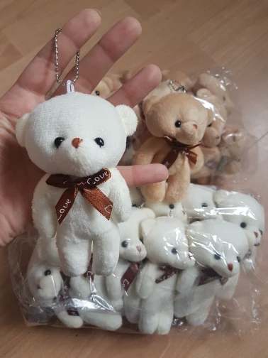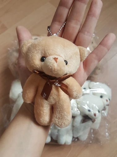 Adorable petit ourson. La couleur GRISE est très très jolie. Matière douce. Noeud autour du cou satiné marron avec l’inscription : Love. C’est une jolie décoration, ou porte cléf. ( ce n’est pas un jouet. Ne convient pas à un enfant car les yeux sont en plastique détachables, risque de l’avaler. ) Très joli, Identique à la description.