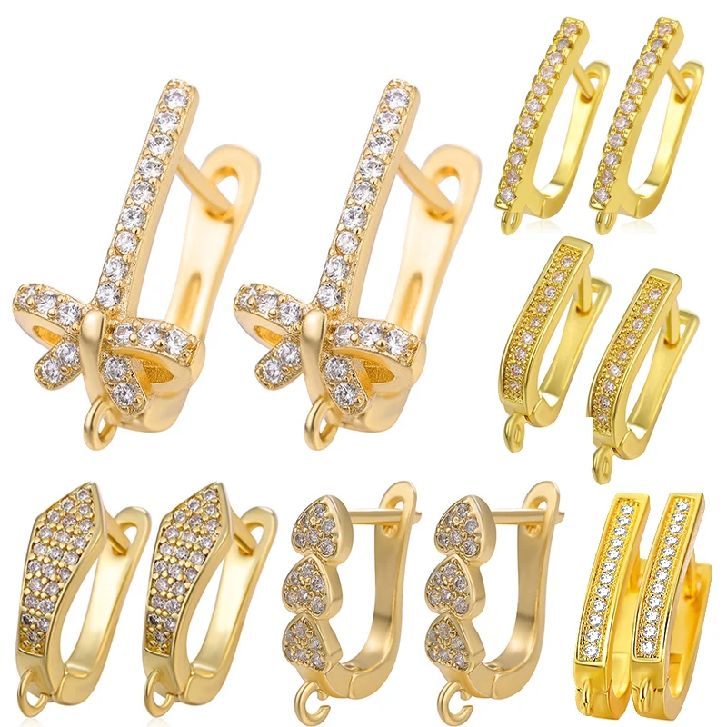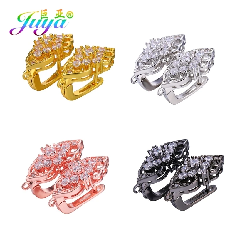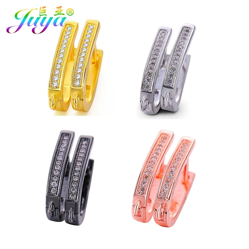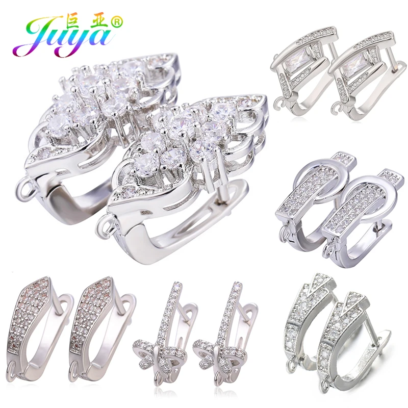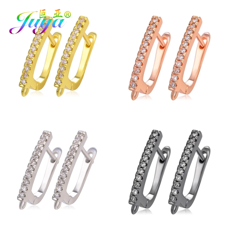 Материал для изготовления сережек Juya сделай сам, застежка с фианитами, крючки для сережек, аксессуары для модных серьги-подвески ручной работы