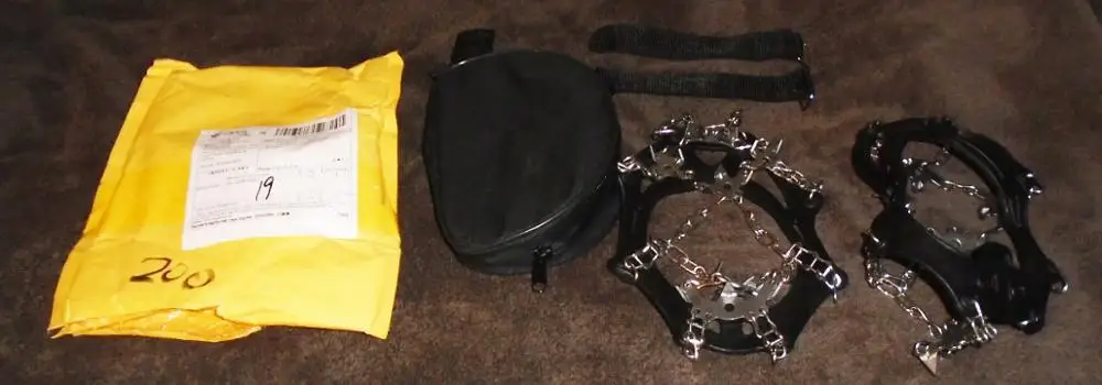 Товары точно такие же, как рекламируются. Они идеально подходят для прогулок по тротуарам, покрытым снегом, который был закреплен на льду. В упаковке имеются два ремешка, которые используются для дополнительной безопасности косточек. Упаковка содержит очень приятный сюрприз. Украшенные косынками и двумя ремешками, были очень аккуратными, на молнии, мягкий чехол для переноски. При прибытии в пункт назначения, грязные и влажные скобы могут быть удалены и сделаны аккуратными, закрепив их в чехле. Чехол имеет петлю для ремня. Эти скобы-выгодная покупка, и этот клиент рекомендует их.