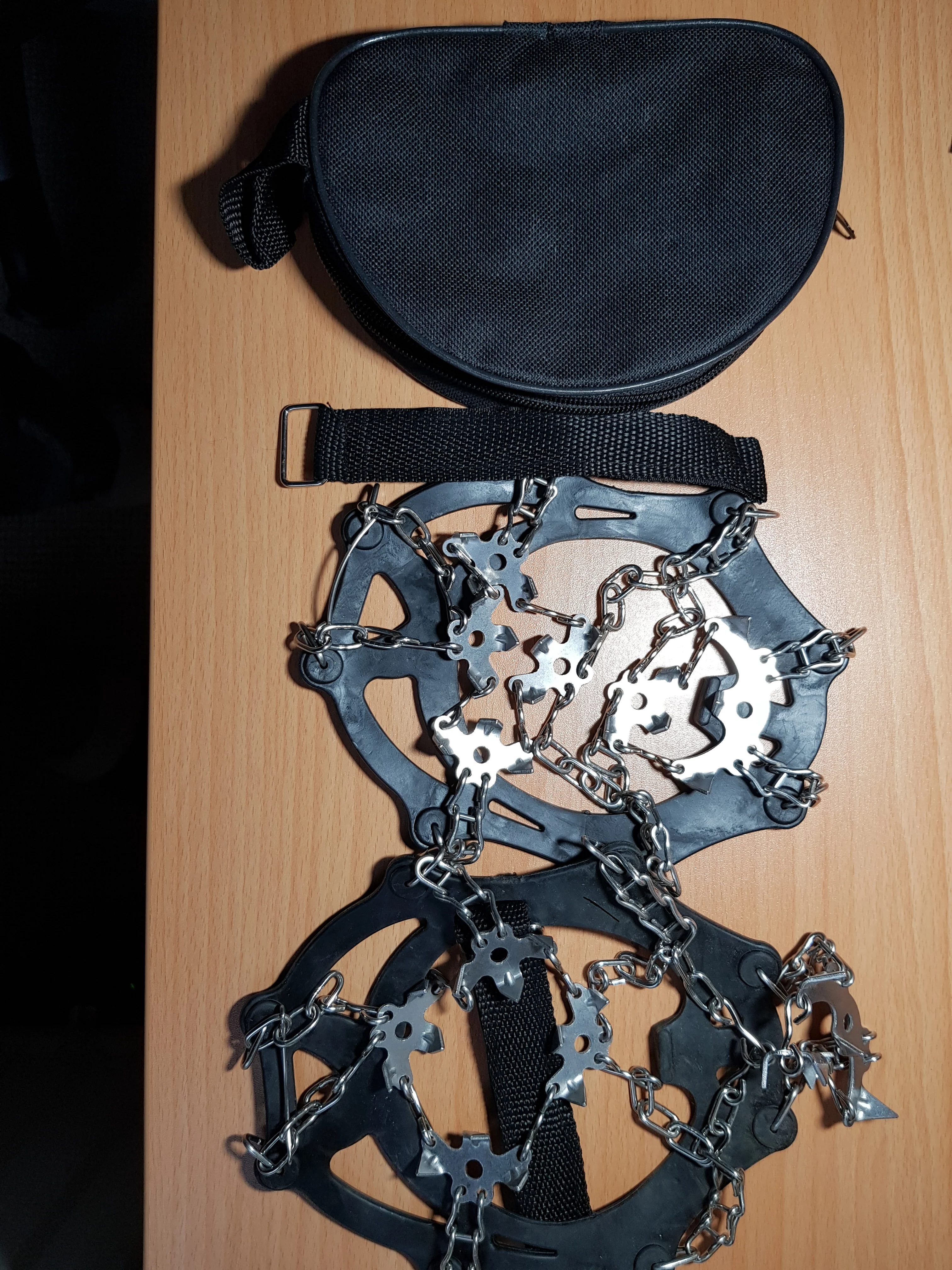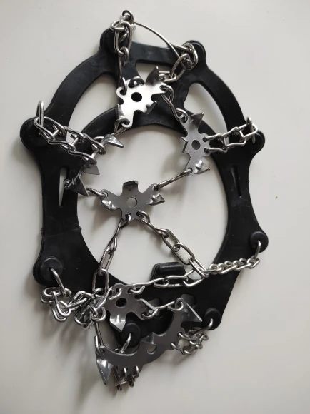 когти и цепи солидные! резиновая рамка показалось маленькой на вид, но на ботинок налезла, хоть и с трудом. натянул на летние ботинки, пусть пока растягивается до гололёда