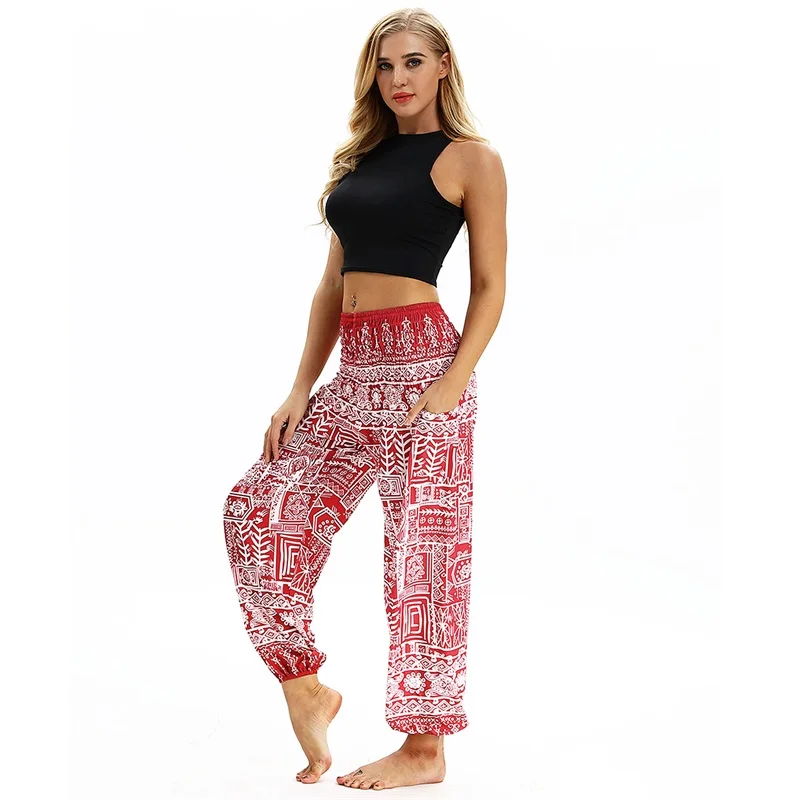 Летние пляжные богемные брюки RAISEVERN, женские шаровары с высокой талией, винтажные свободные брюки с цветочным рисунком