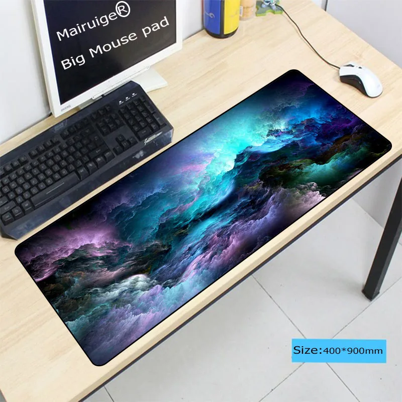 Большой игровой коврик для мыши Mairuige, синий, фиолетовый, облако, космос, водонепроницаемый, с удлиненными краями блокировки, компьютерный стол, ноутбук для CSGO Dota 2, LOL