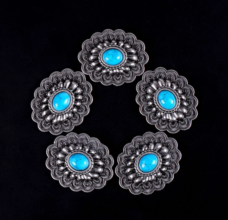 10 шт. 35*28 мм Юго-Западная овальная Бирюзовая Антикварная Серебряная отделка Concho