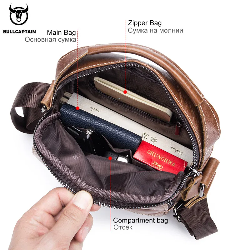 Сумка-мессенджер BULLCAPTAIN Мужская, кожаная, винтажная