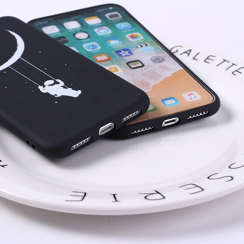 Модный мягкий силиконовый чехол с принтом космоса, любви, Луны, астронавта, кота для iPhone 12 11 13Pro Max Mini 7Plus 7 8 8Plus X XS Max Fundas