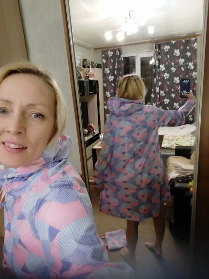 заказывала на размер больше, с учётом того, что придется носить на куртку или пуховик в дождь в Питере. качество отличное, ничего не торчит, замок ровный, запаха не было, до СПб дошло где-то за 2 недели. с продавцом не общалась