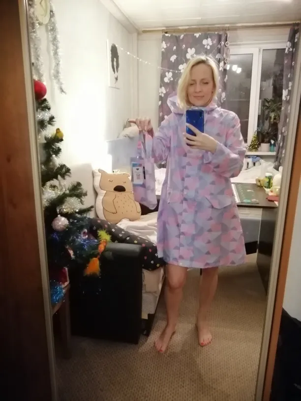 быстрая доставка , хорошо упакован, мой рост 157 см , длина ниже колен. ткань приятная, я довольна. проверю в дождь и напишу