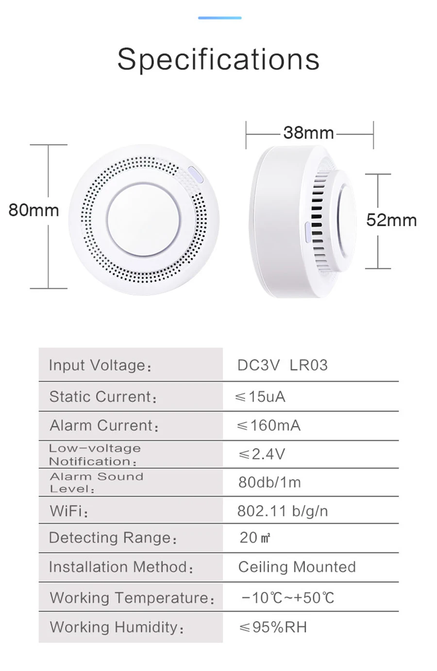 Я доволен покупкой. Я проверил его и работает над обнаружением дыма. Очень простая конфигурация. Инструкции очень детальные, я использую их с приложением Smart Life. Рекомендуется 100%. Большое спасибо. Я буду покупать другие товары для своих друзей