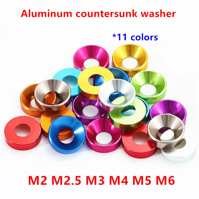 Алюминиевая плоская шайба M2 M2, 5 M3 M4 M5 M6, анодированная потайная головка шайбы для болтов, 10 шт.