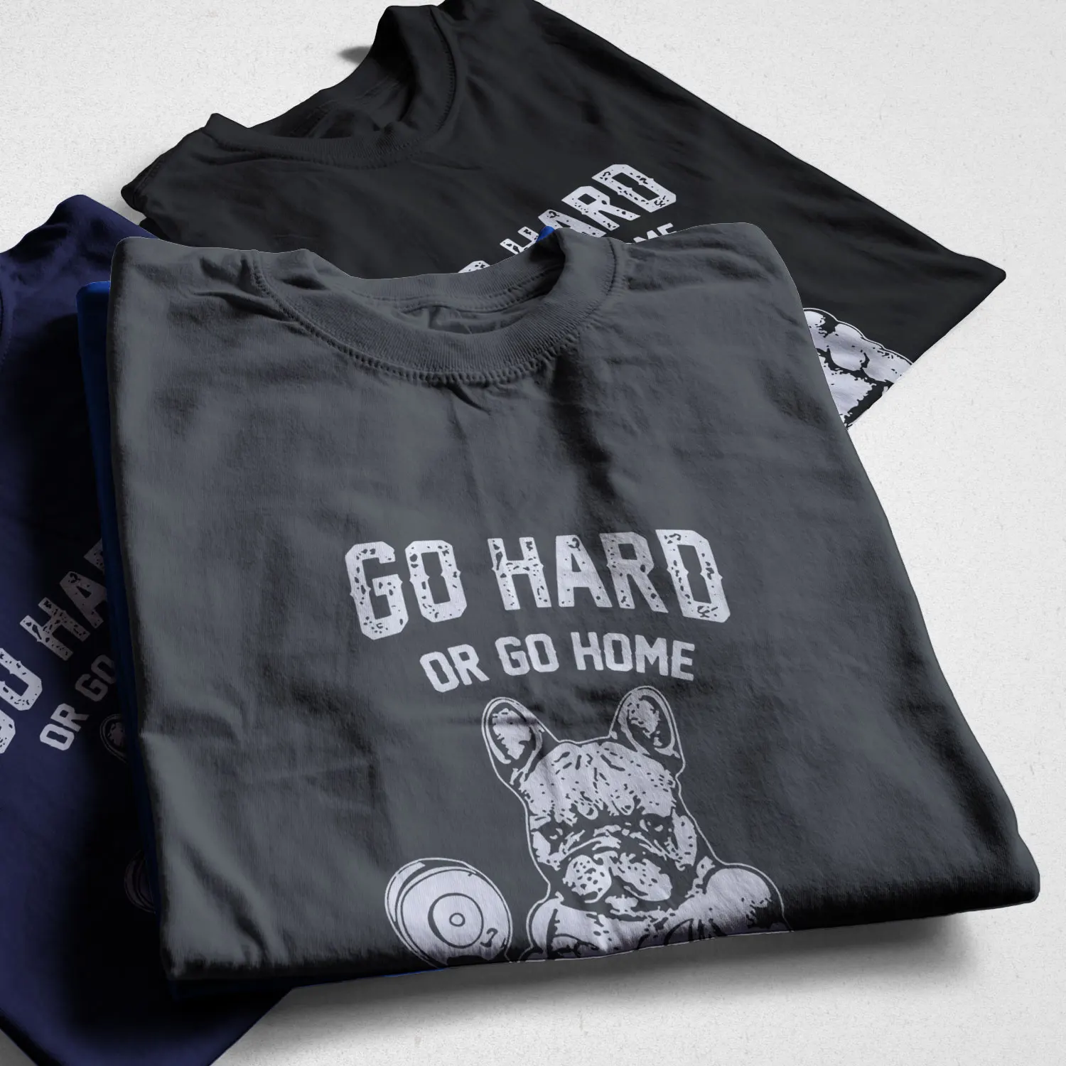 COOLMIND PU0118A 100% хлопок go hard or go home Французский бульдог принт мужская футболка Повседневная с круглым вырезом мужская футболка Летняя крутая футболка