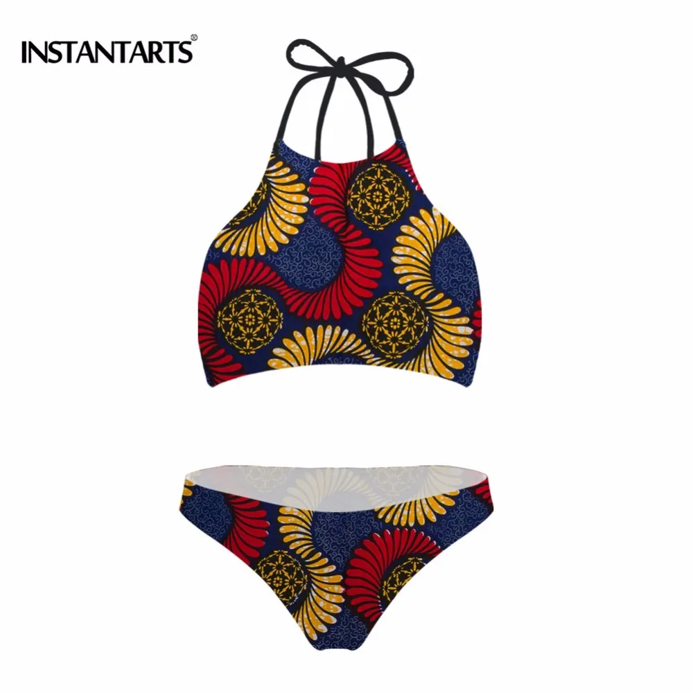 INSTANTARTS Горячая шнуровка купальный костюм женский Африканский принт бразильские Наборы бикини купальник туземные купальники повязка на завязках пляжная одежда