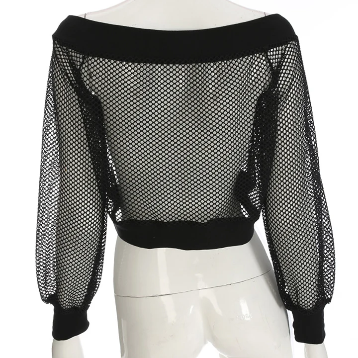 Rosetic 2020 Готический сексуальный короткий топ, прозрачный сетчатый топ, футболка с длинным рукавом, Женская водолазка с металлическим воротником, футболки в стиле панк, уличная футболка