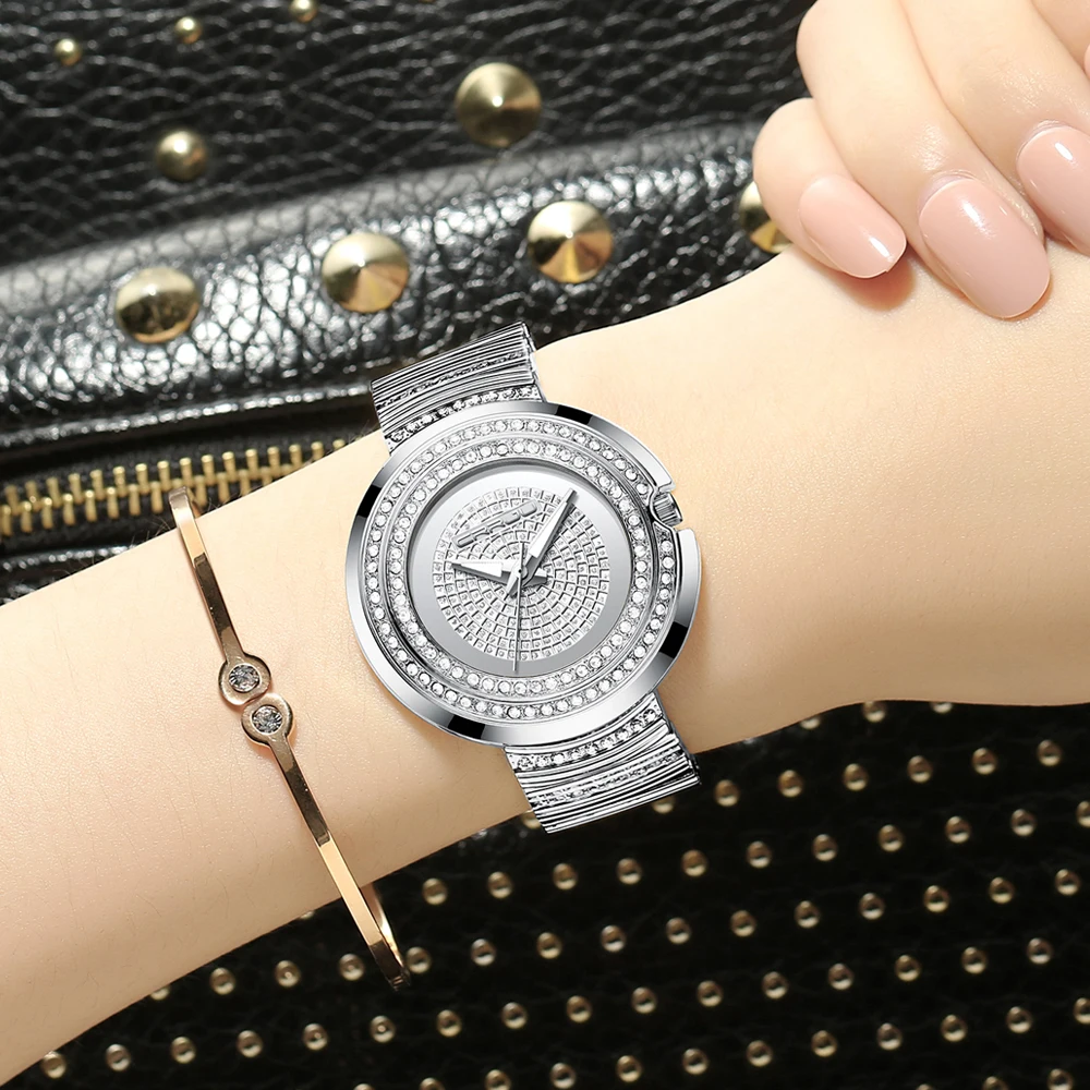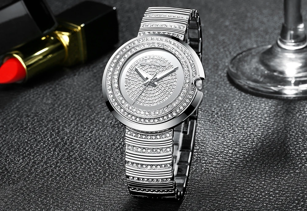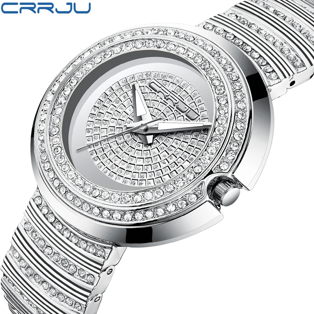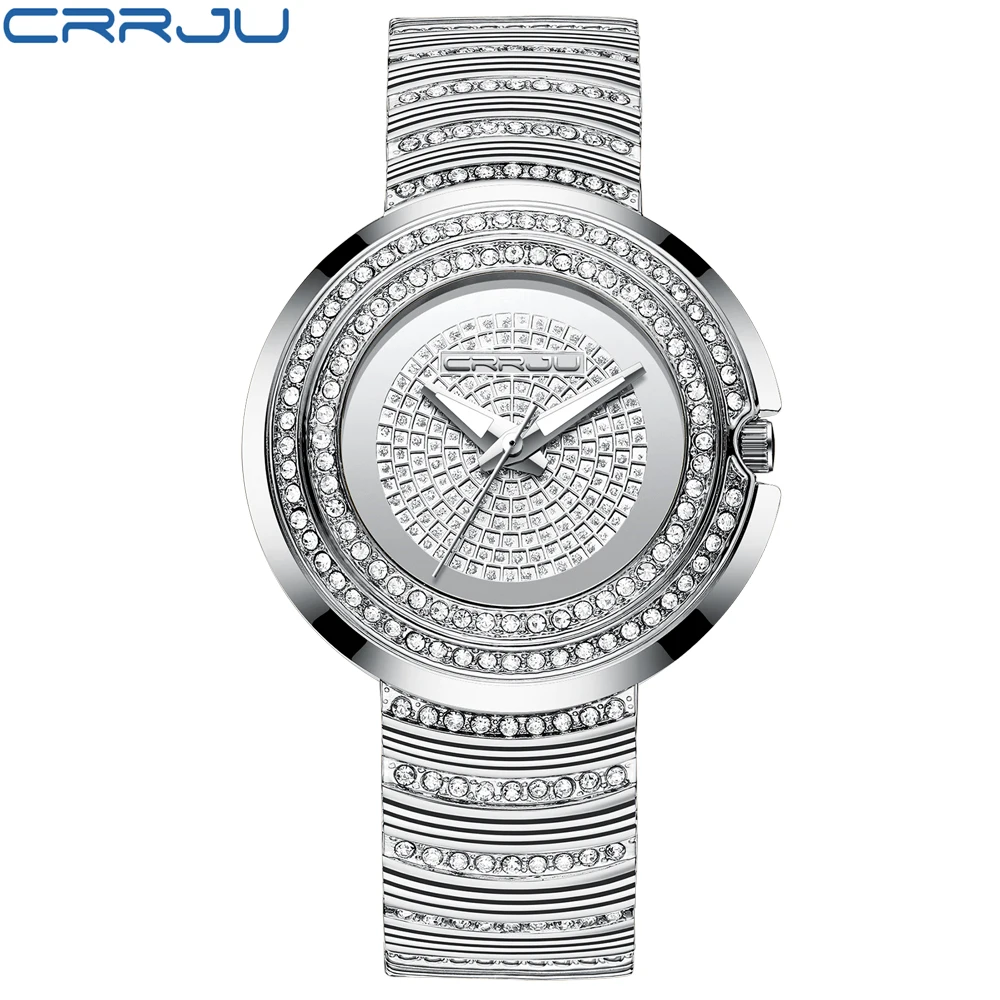 Часы наручные CRRJU женские кварцевые, модные повседневные аналоговые с браслетом со стразами, подарок для женщин